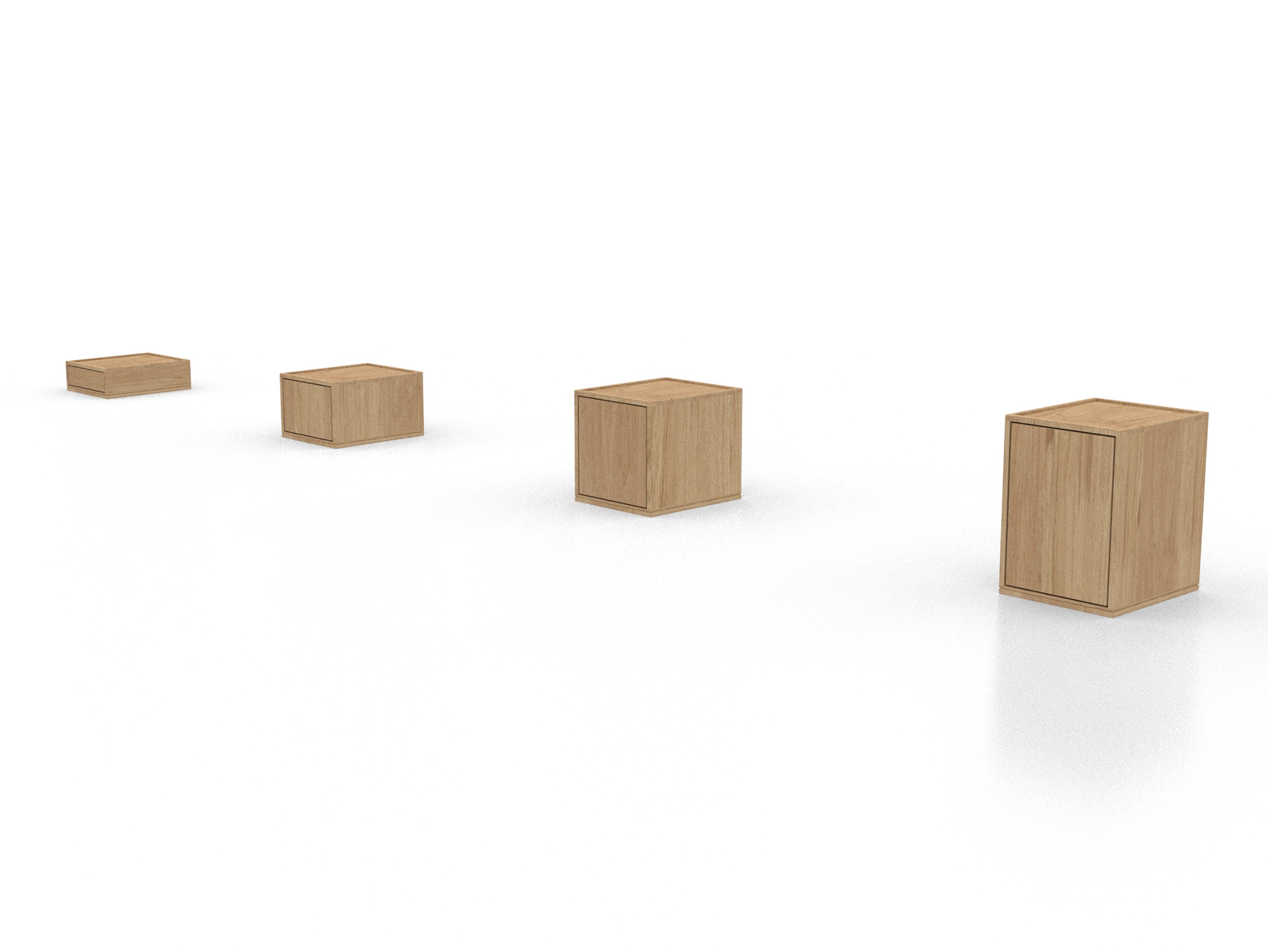 Mulighed for både udtagelig skuffe eller skabslåge i de forskellige moduler.