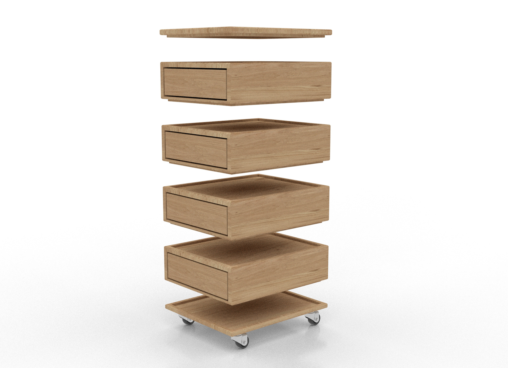 Lavet i dele for at kunne tilpasse forskellige behov, med aftagelige moduler, herunder bakke der kan tages med videre.